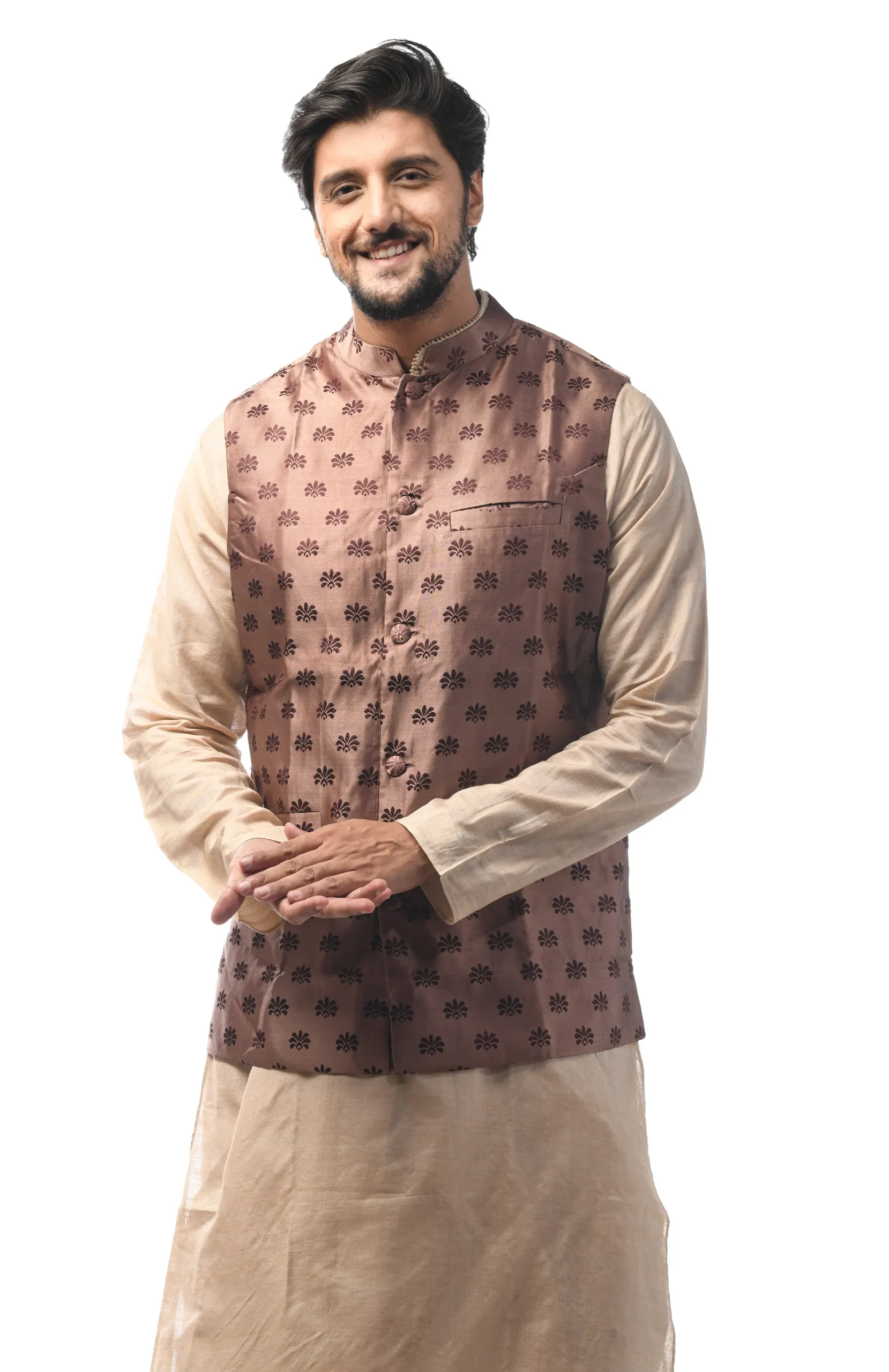 Biswa Bangla has perfected the art of making Jackets with fabric of assured quality, handwoven and chosen with great care. This classy jacket has been widely admired by connoisseurs.