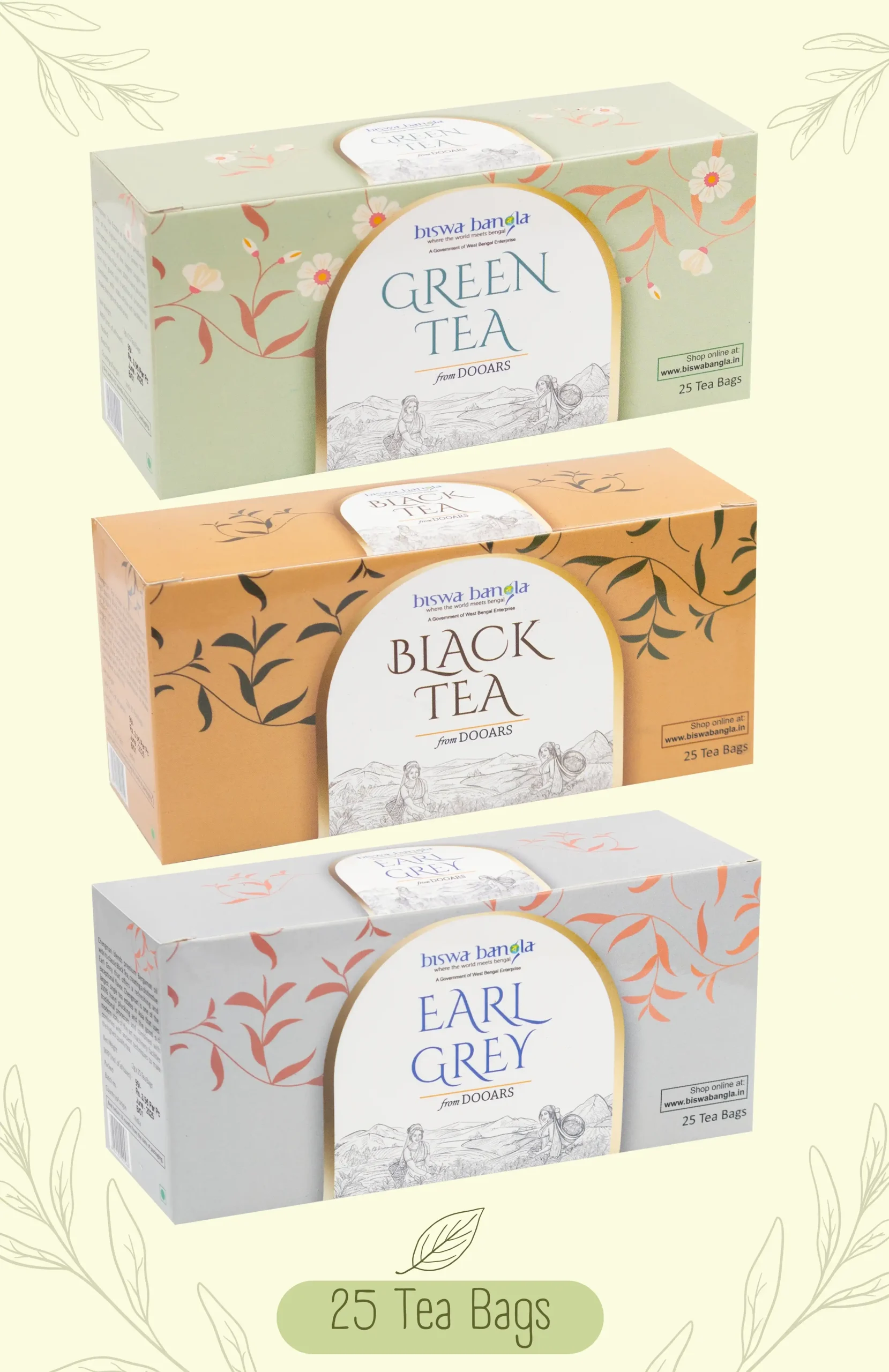 • 1 Black Tea Bags + 1 Green Tea Bags + 1 Earl Grey Tea Bags