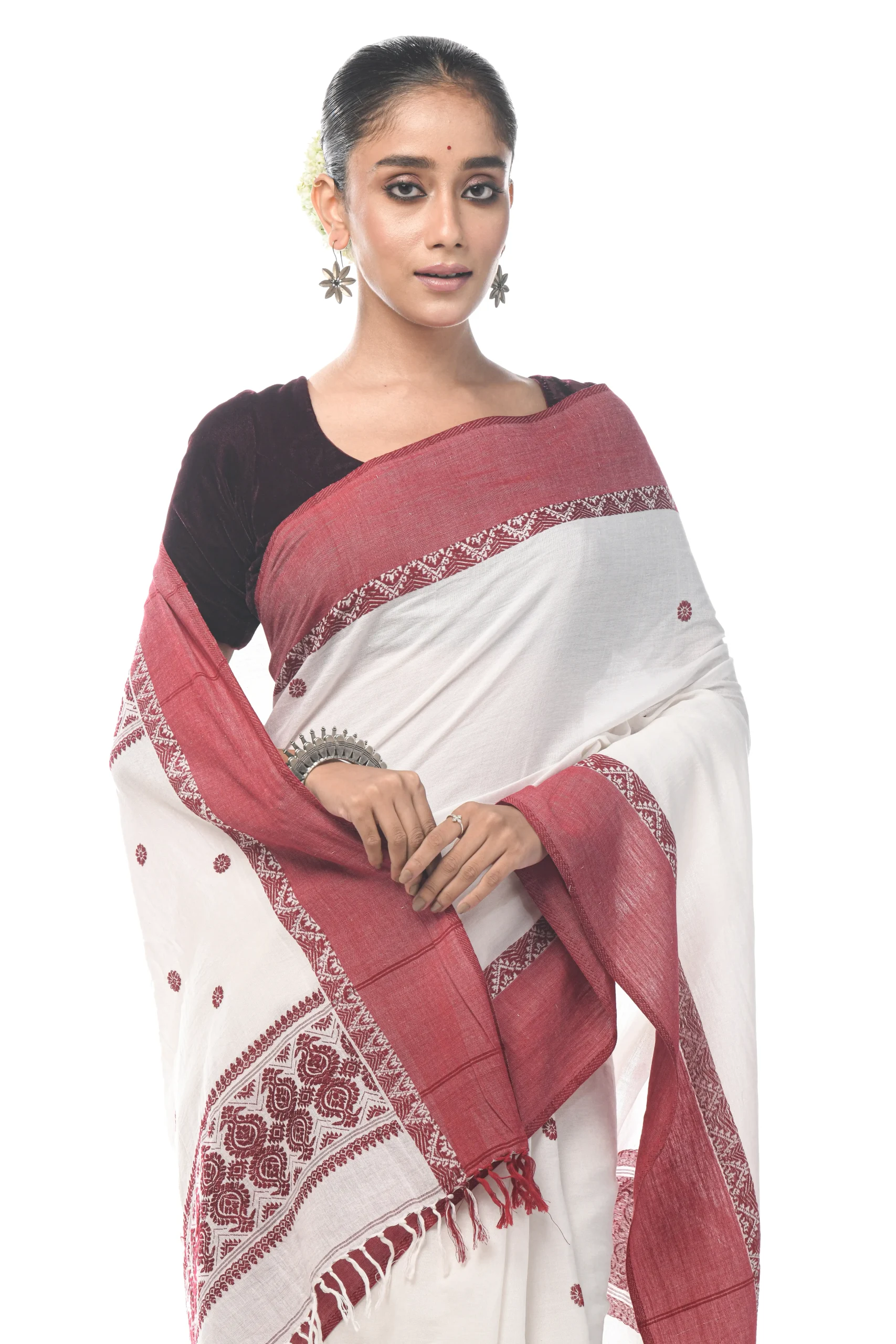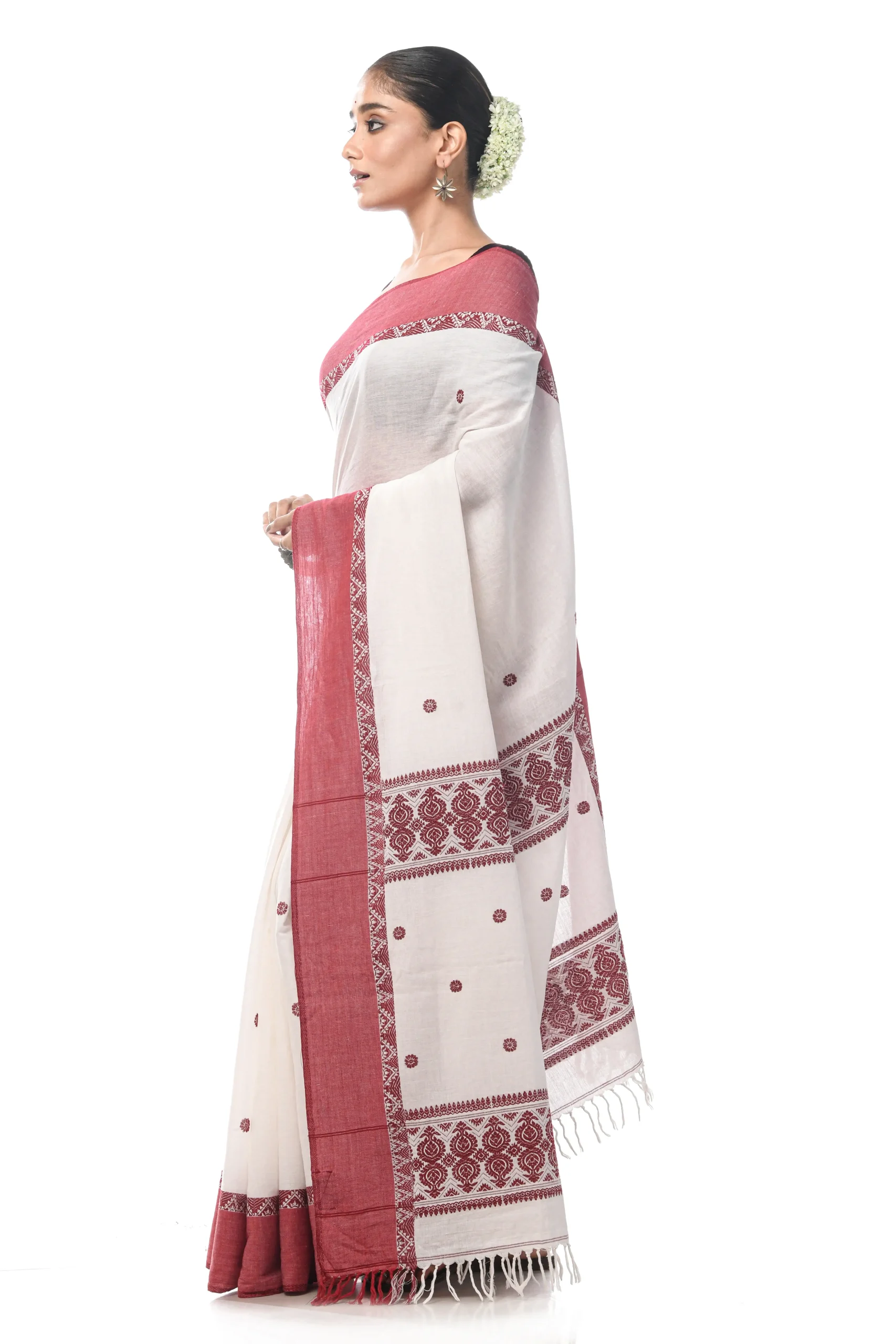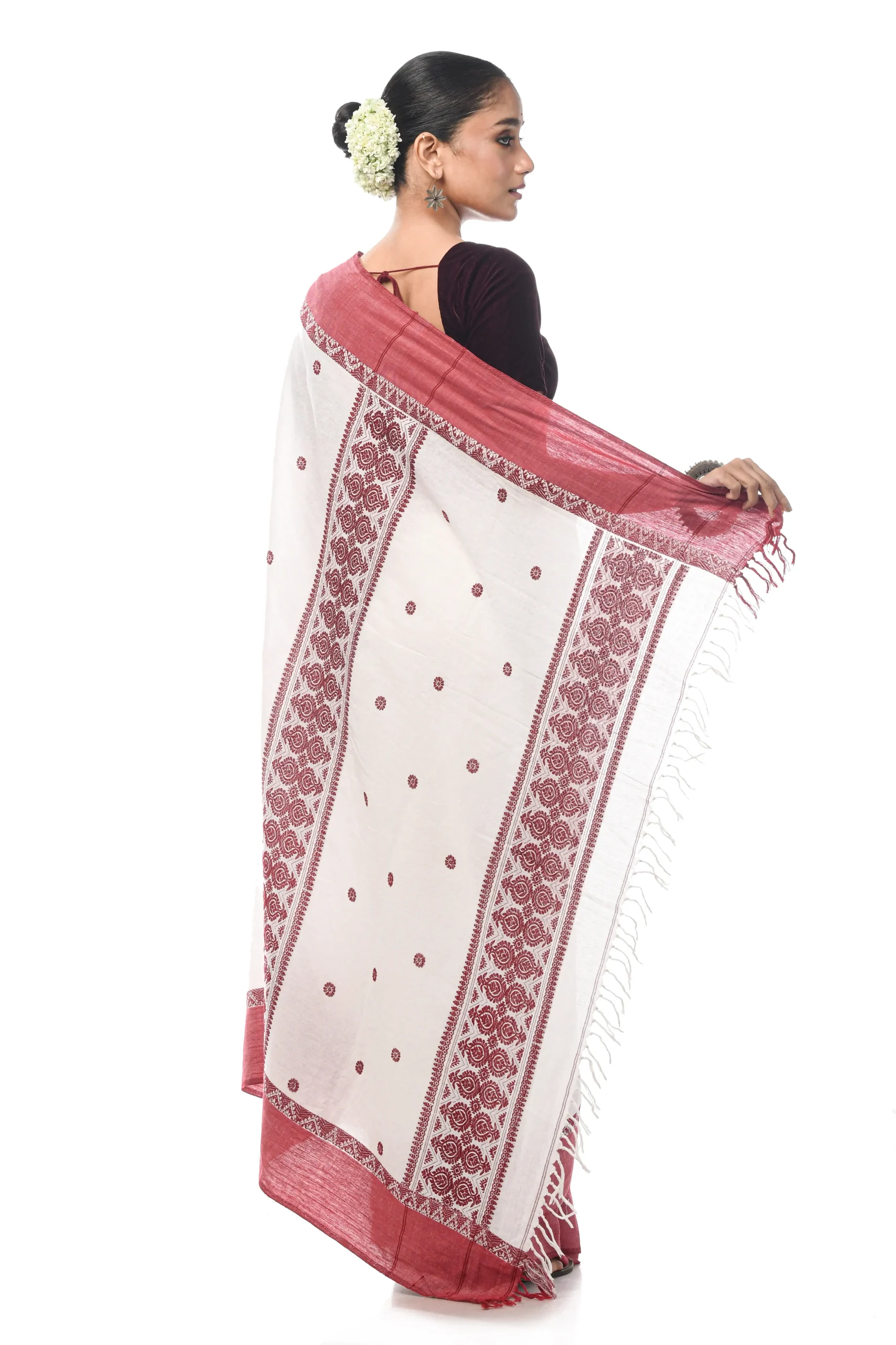 • Authentic Dokna Cotton Saree, handwoven in Bengal.
