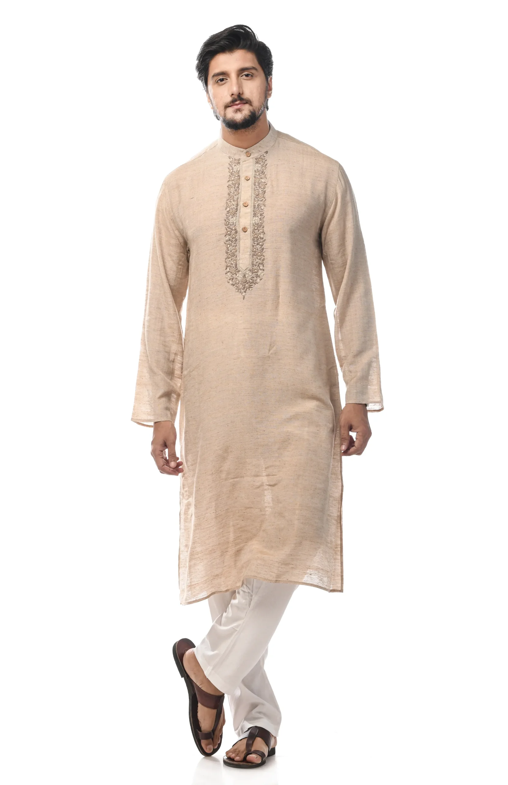 Kurta, the traditional topwear, has been in vogue literally forever. Handwoven Cotton fabric makes this Kurta a classy choice for any occasion.