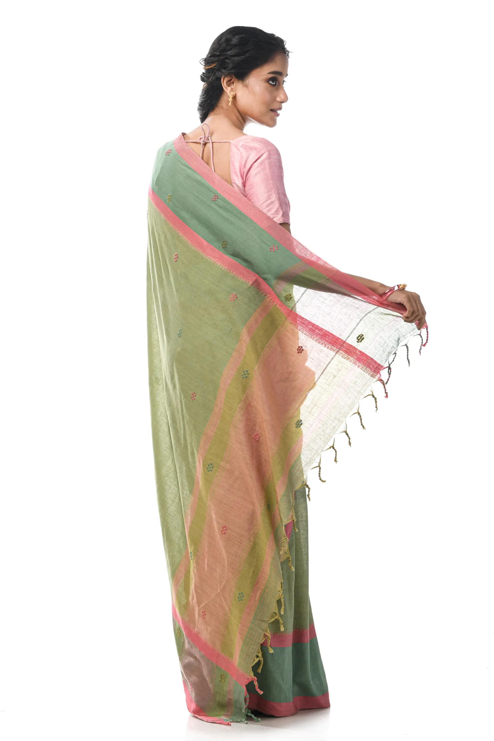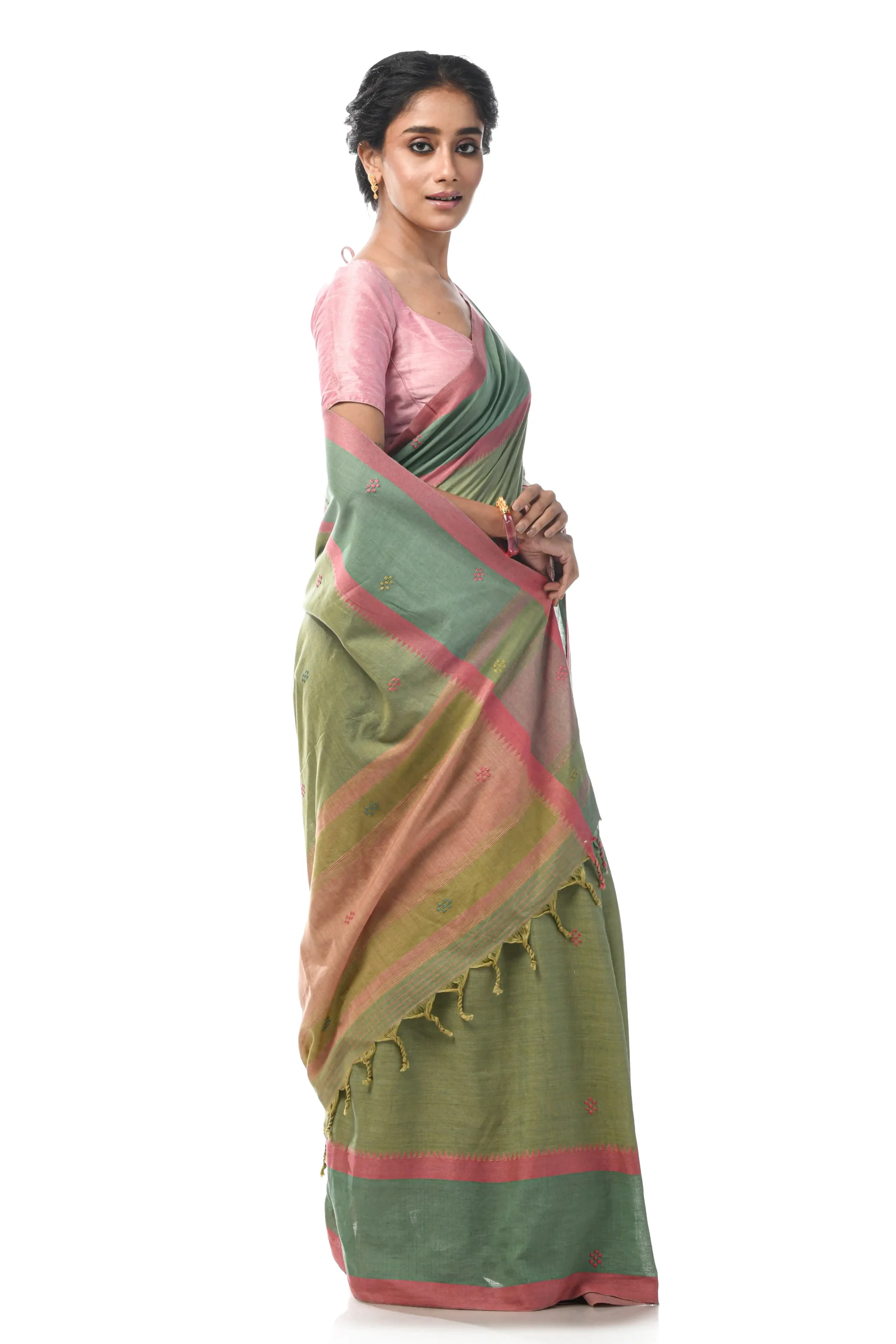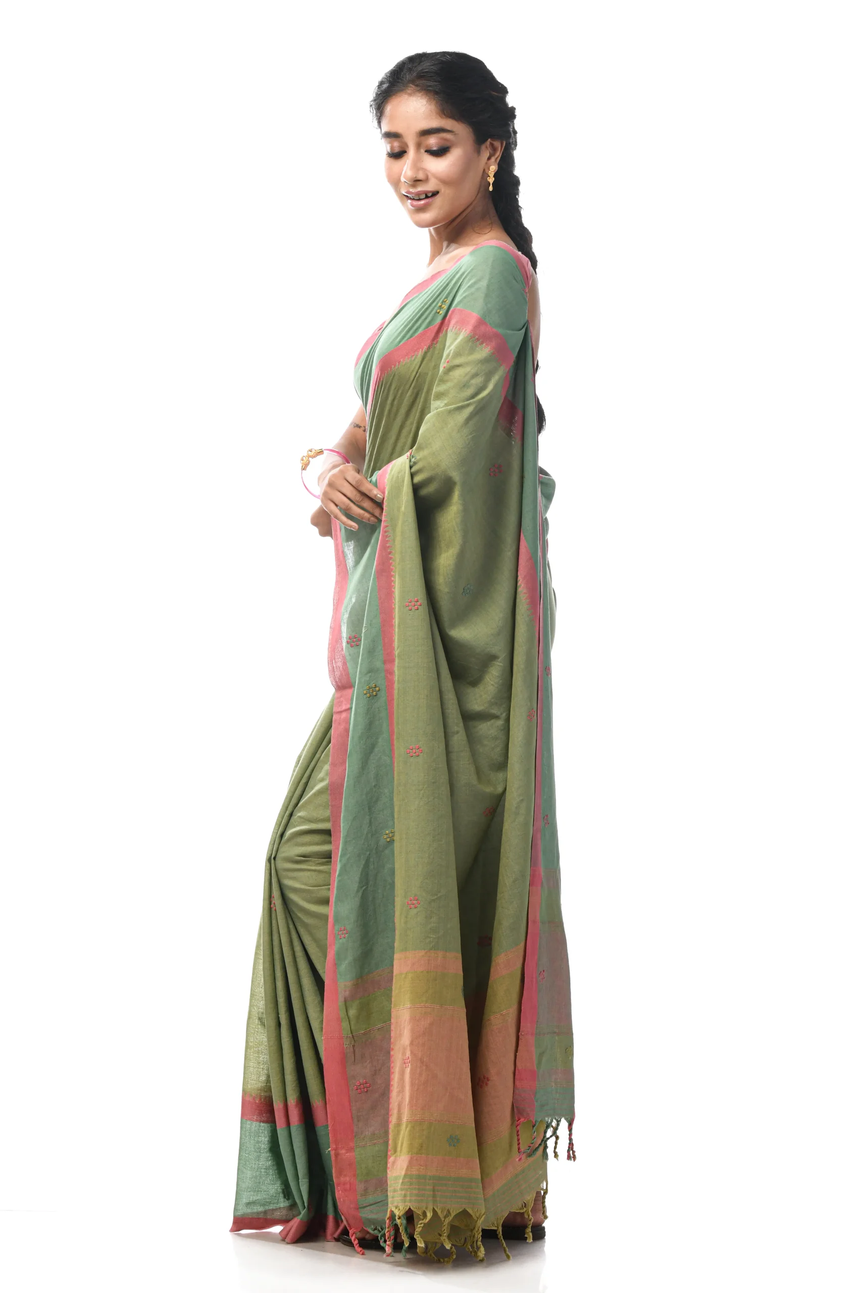 Handwoven Dhaniakhali Cotton Saree – Green