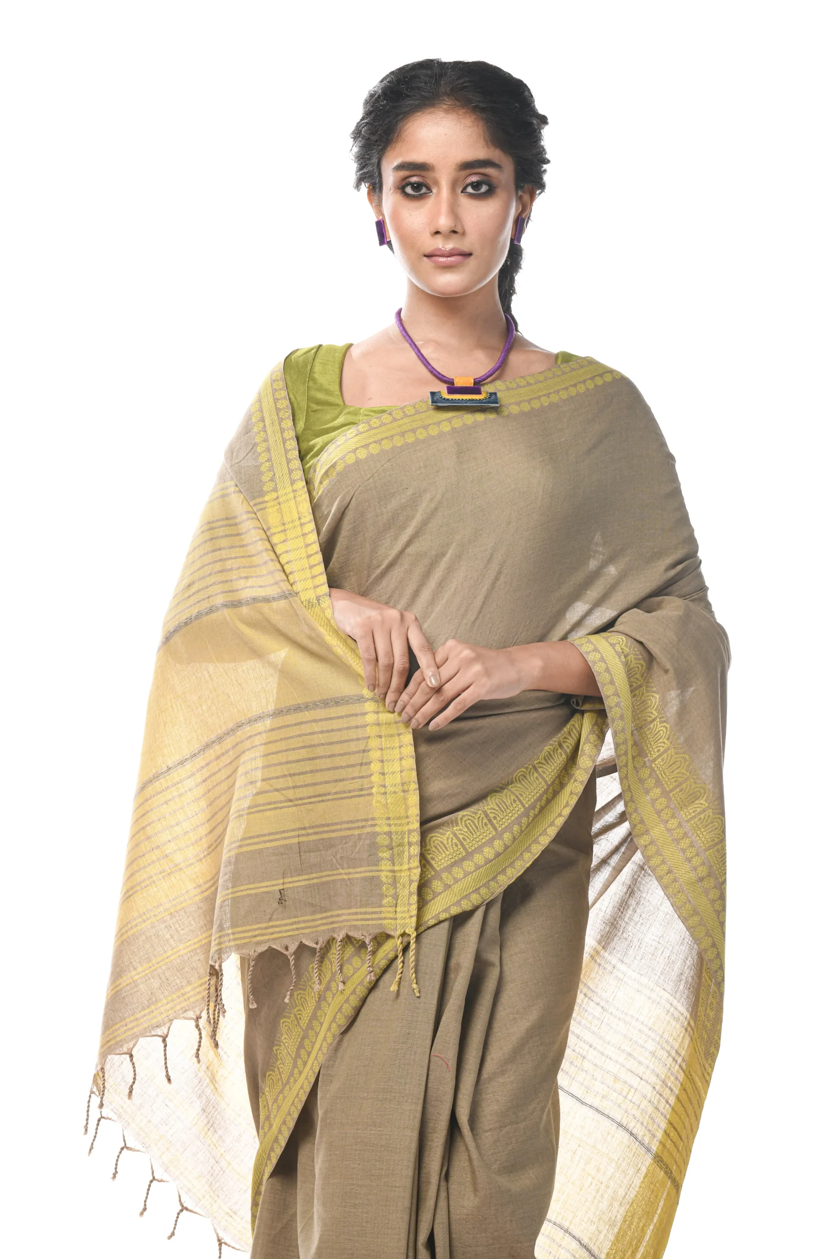 Handwoven Dhaniakhali Cotton Saree – Moss Green