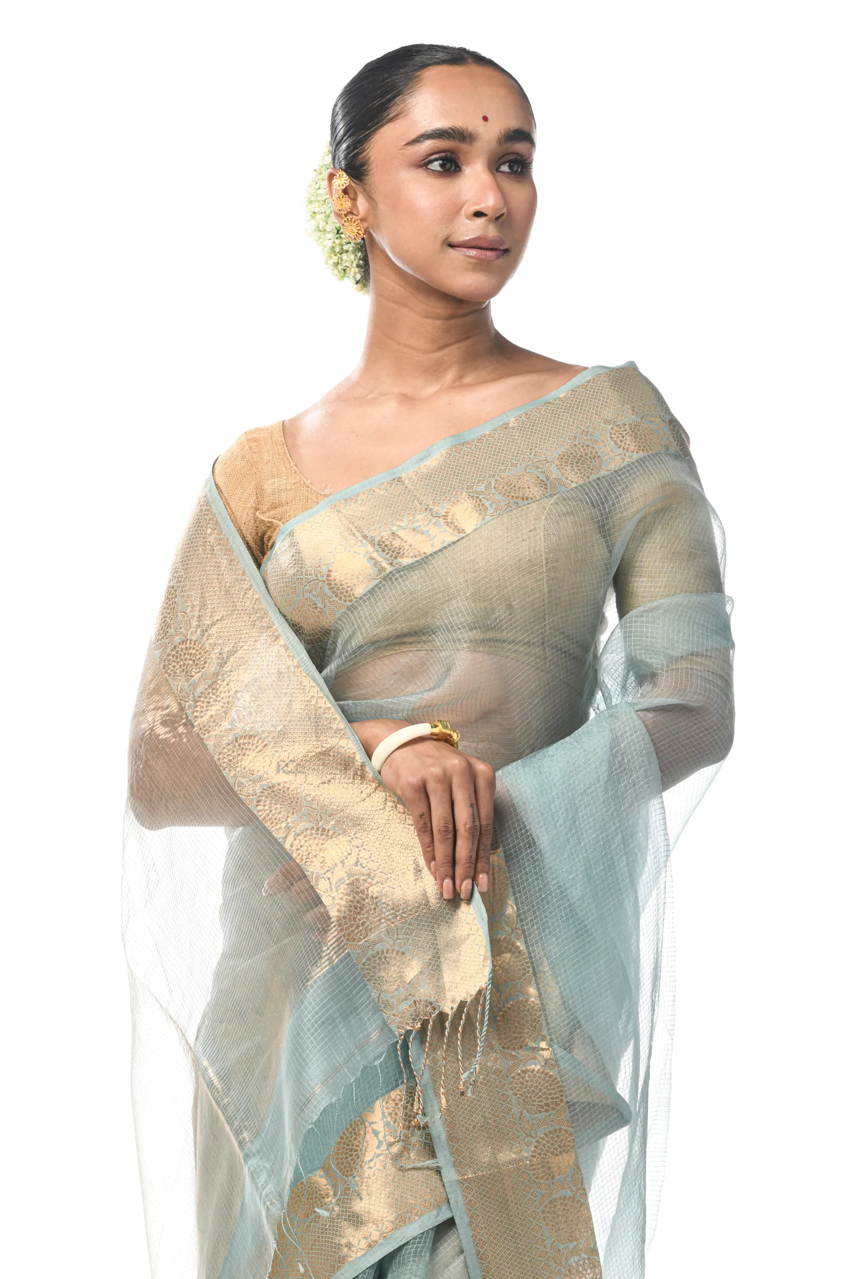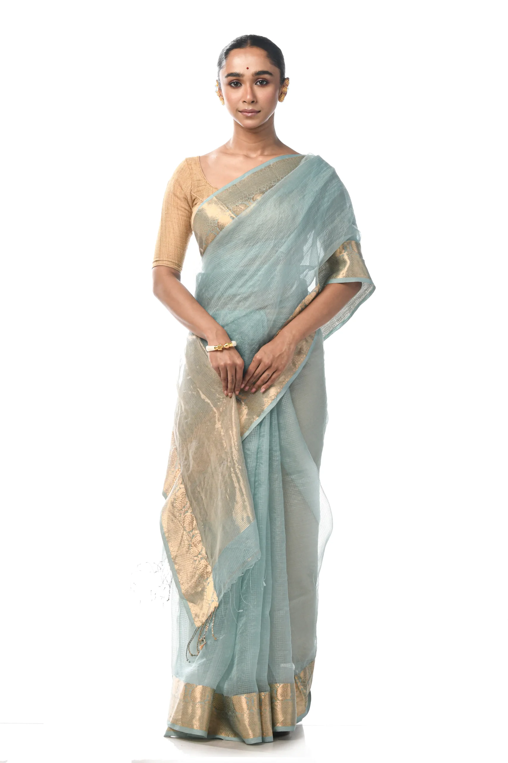 Handwoven Tangail Silk Saree with Zari Work – Aqua