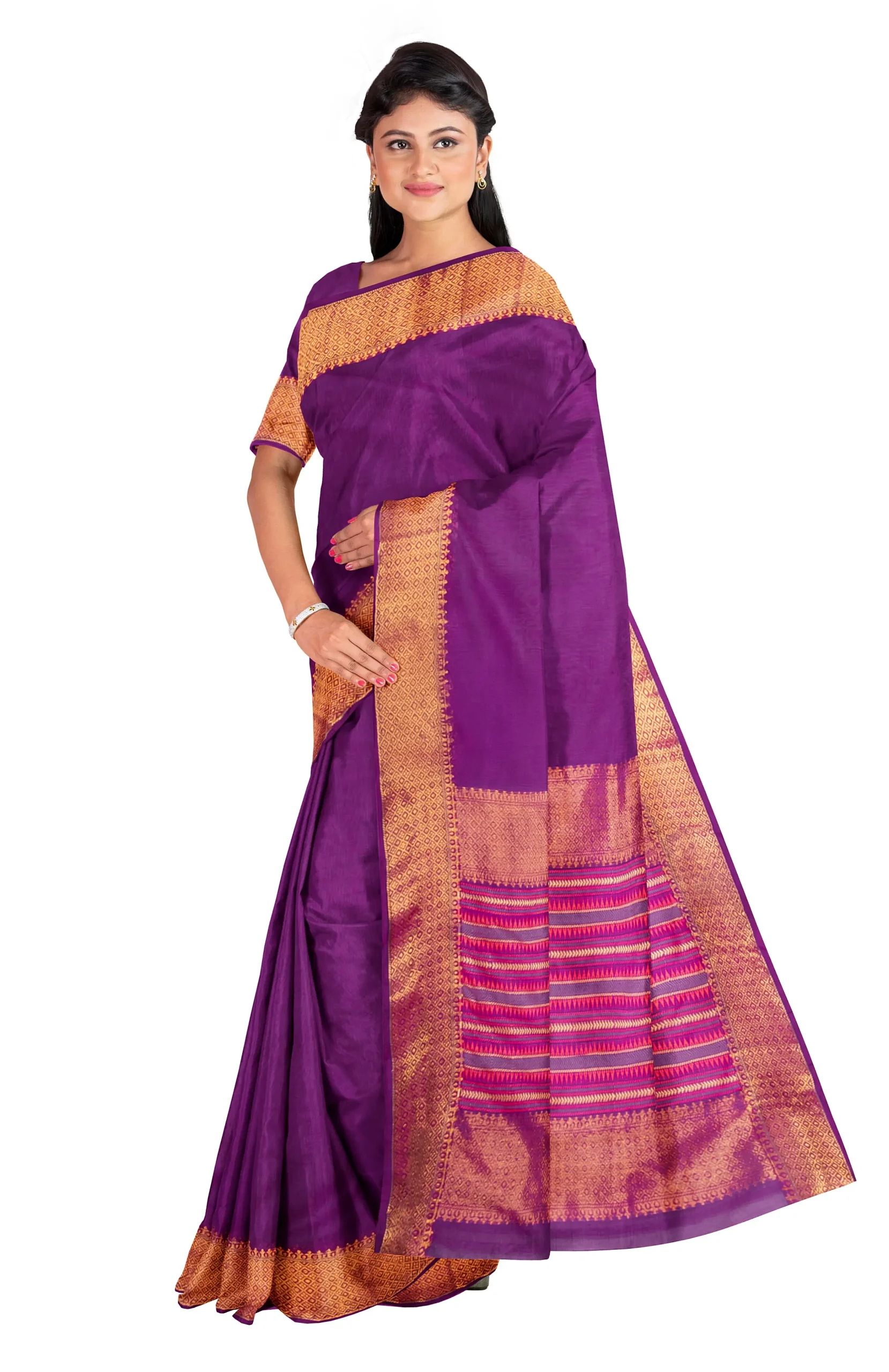 Tangail sarees are hand-woven on cotton and silk with hand-worked buti, floral design or contemporary motifs. The main characteristic of Tangail saree is the extra weft buti, tiny motifs repeated all over the ground of the saree with the help of Jacquard loom. Cotton Tangail is very popular because it is light and excellent as a daily wear. About 1,000 weavers and 2,000 ancillary artisans, largely in Nadia and some in Bardhaman district are producing these colourful, easy-to-manage, uniquely elegant cotton sarees.