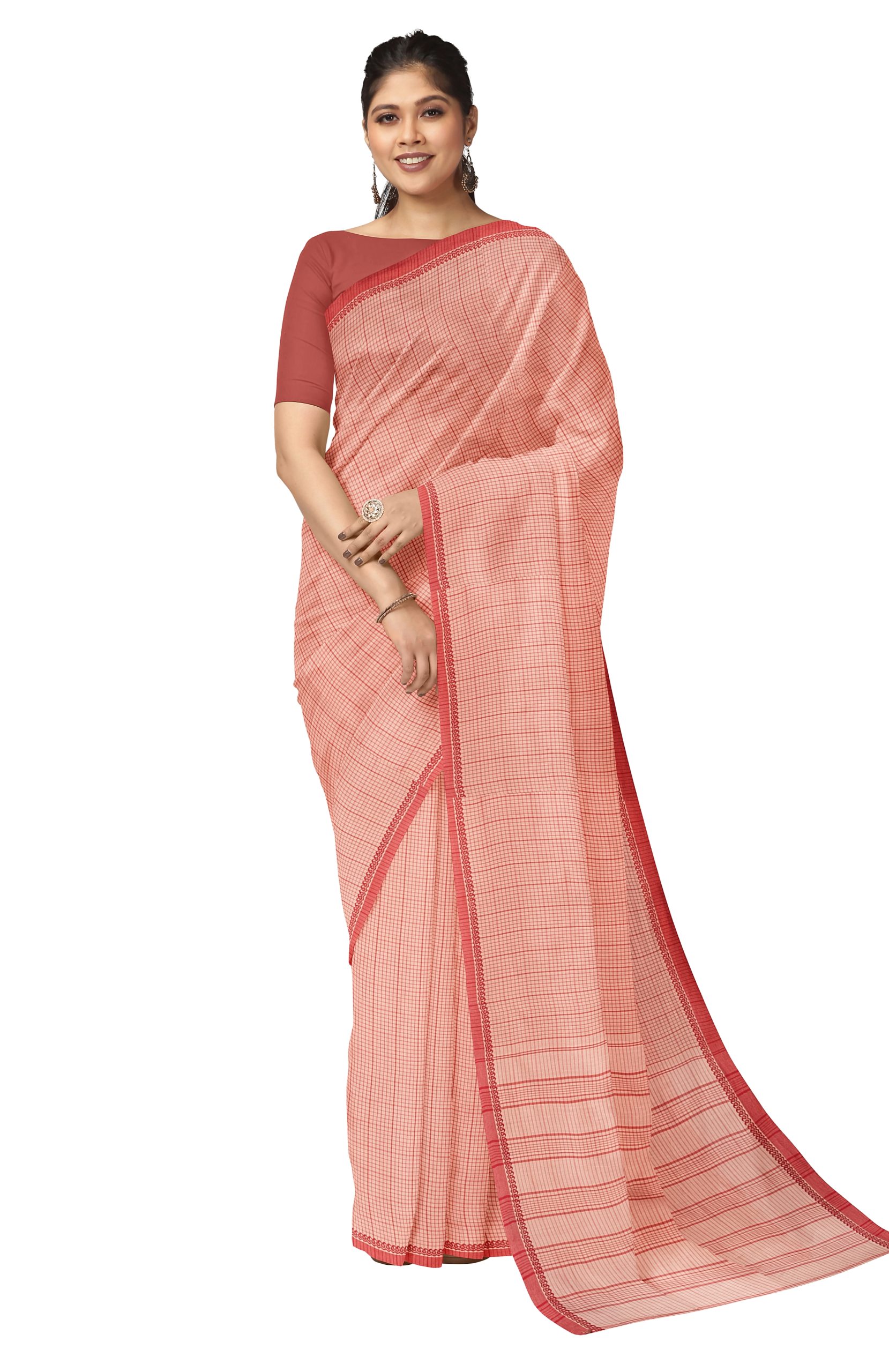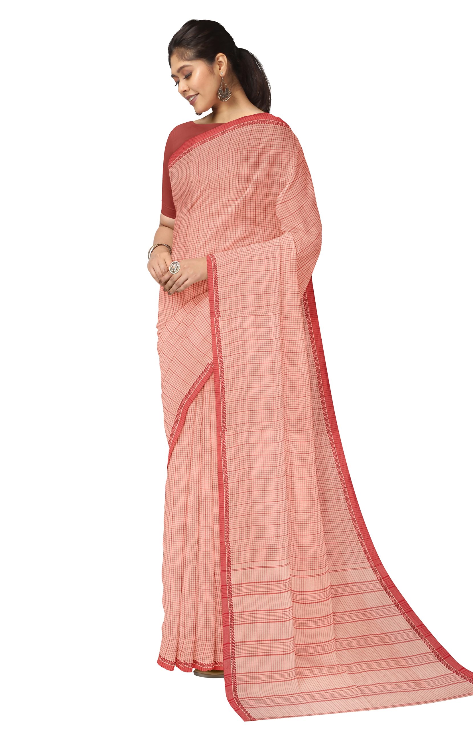 The Santipuri saree is named after Santipur in Nadia District of West Bengal, specially known for its saree with the jacquard design. Fine cotton yarn ranging from 60s to 100s is used both in warp and weft. Santipur has been famous for its elegant designs inspired by nature: designs such as Ganga-Jamuna, Benkipar, Bhomra, Rajmahal, Anspar, Do-Rookha, Visva-Bharati, Brindamani Mour-Par, Nilambari. The Santipuri saree is a Geographical Indication (GI) product of Bengal. A weaver takes around 2-3 days to complete a saree.