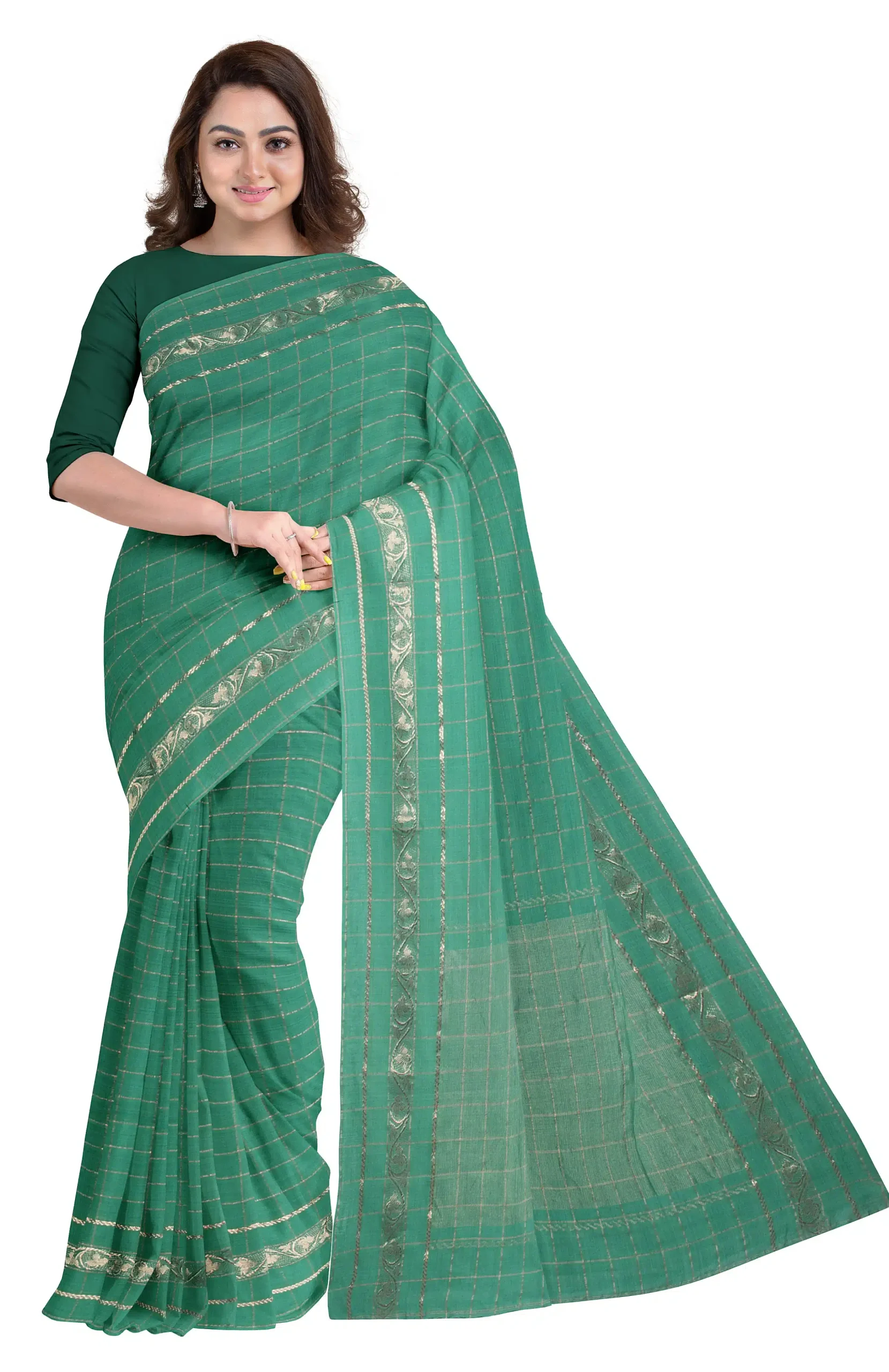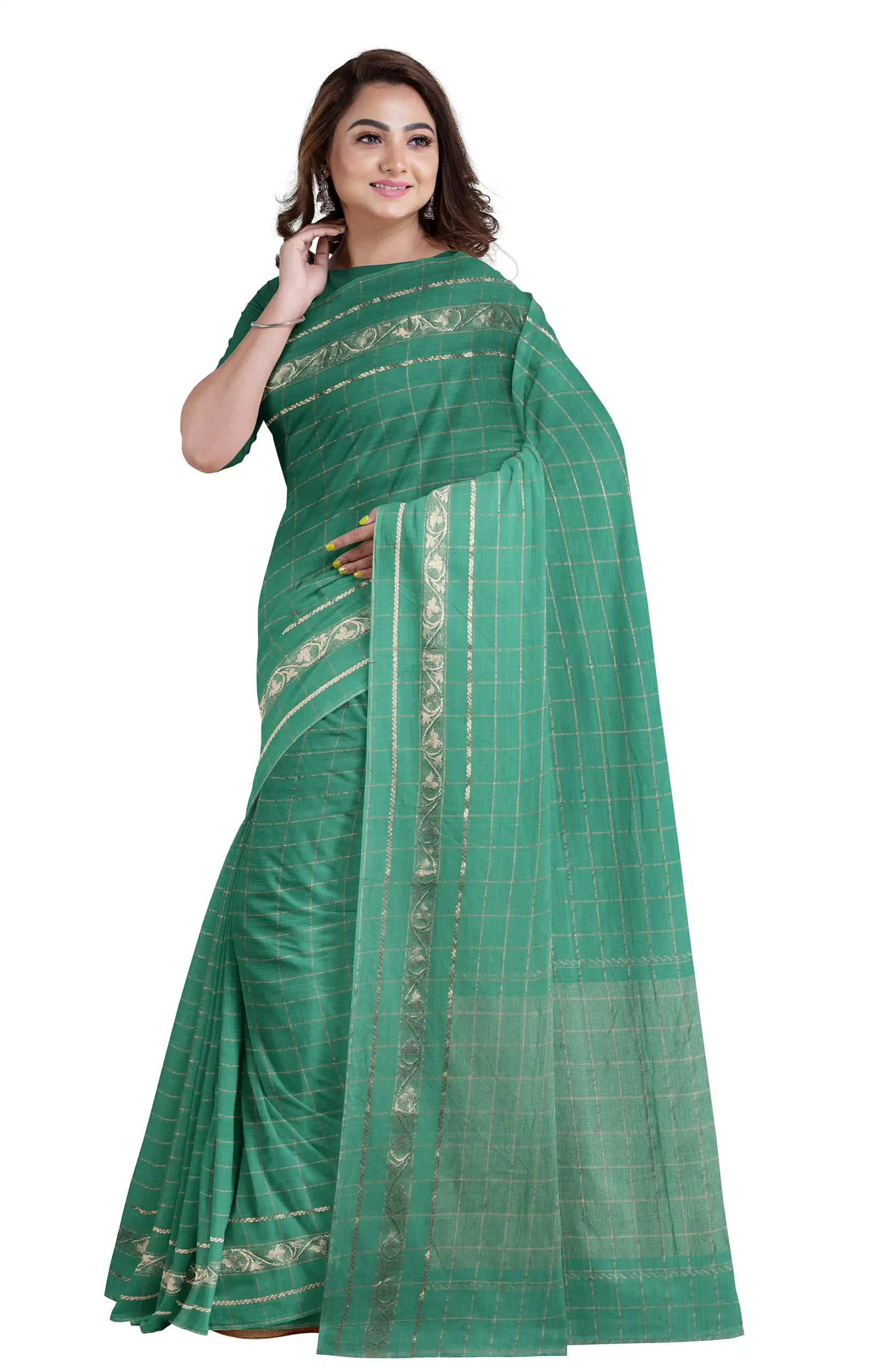 Tangail sarees are hand-woven on cotton and silk with hand-worked buti, floral design or contemporary motifs. The main characteristic of Tangail saree is the extra weft buti, tiny motifs repeated all over the ground of the saree with the help of Jacquard loom. Cotton Tangail is very popular because it is light and excellent as a daily wear. About 1,000 weavers and 2,000 ancillary artisans, largely in Nadia and some in Bardhaman district are producing these colourful, easy-to-manage, uniquely elegant cotton sarees.