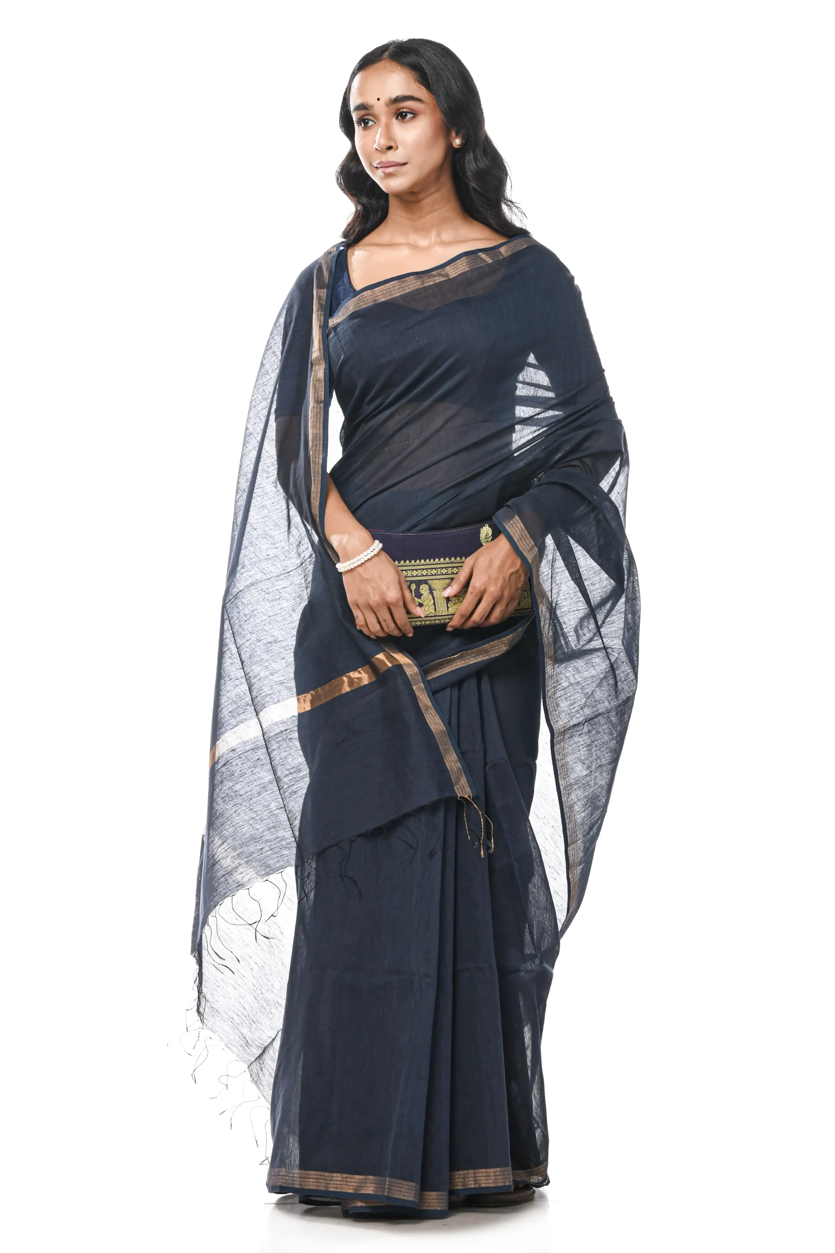 Tangail sarees are hand-woven on cotton and silk with hand-worked buti, floral design or contemporary motifs. The main characteristic of Tangail saree is the extra weft buti, tiny motifs repeated all over the ground of the saree with the help of Jacquard loom. Cotton Tangail is very popular because it is light and excellent as a daily wear. About 1,000 weavers and 2,000 ancillary artisans, largely in Nadia and some in Bardhaman district are producing these colourful, easy-to-manage, uniquely elegant cotton sarees.